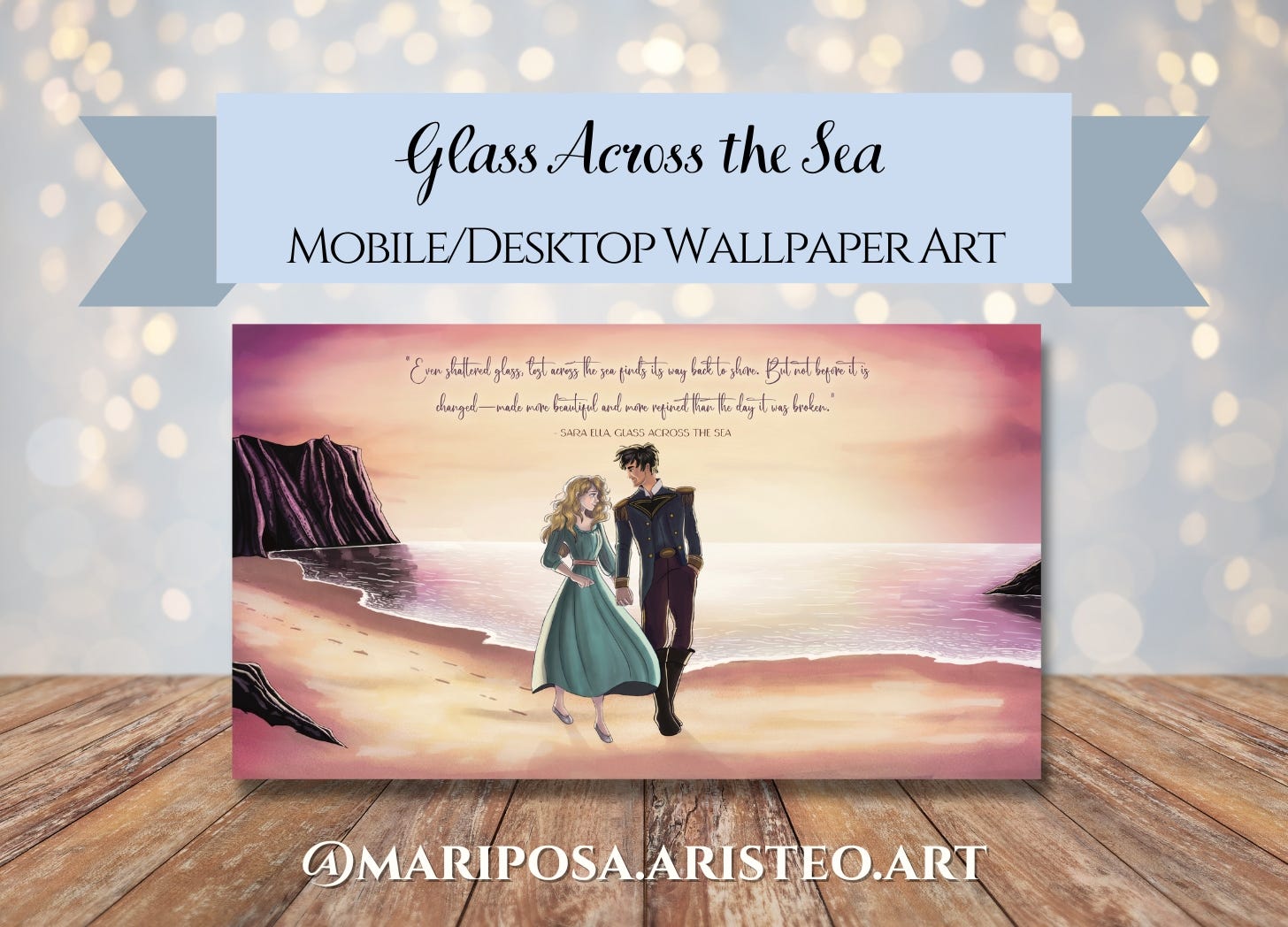 The piece she created for Glass Across the Sea has my heart and gives me all the feels. It features Noelle and Prince Dante (the novel’s two protagonists) walking along their favorite hidden seashore. The scene takes place in Chapter 3 from Dante’s perspective, and the quote featured in the artwork is also first found in this chapter.